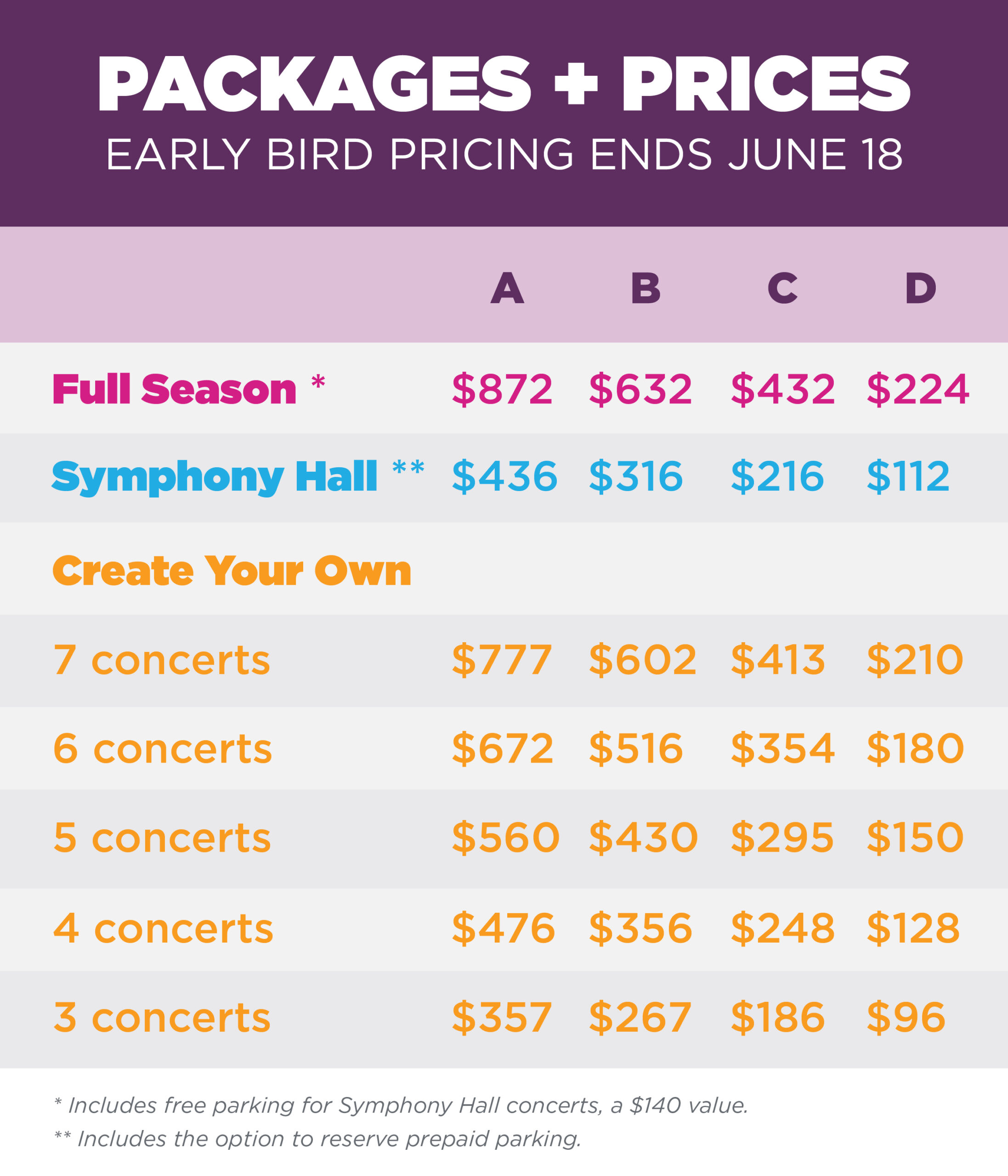 - Free parking for all 4 Symphony Hall concerts.